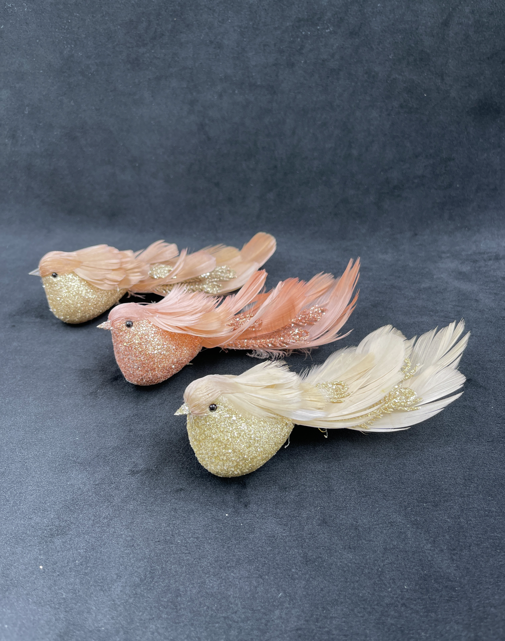 Набор елочных украшений Christmasdeluxe Птицы на клипсе бежевый, кремовый и розовый 17 x 2 x 5см, 3шт