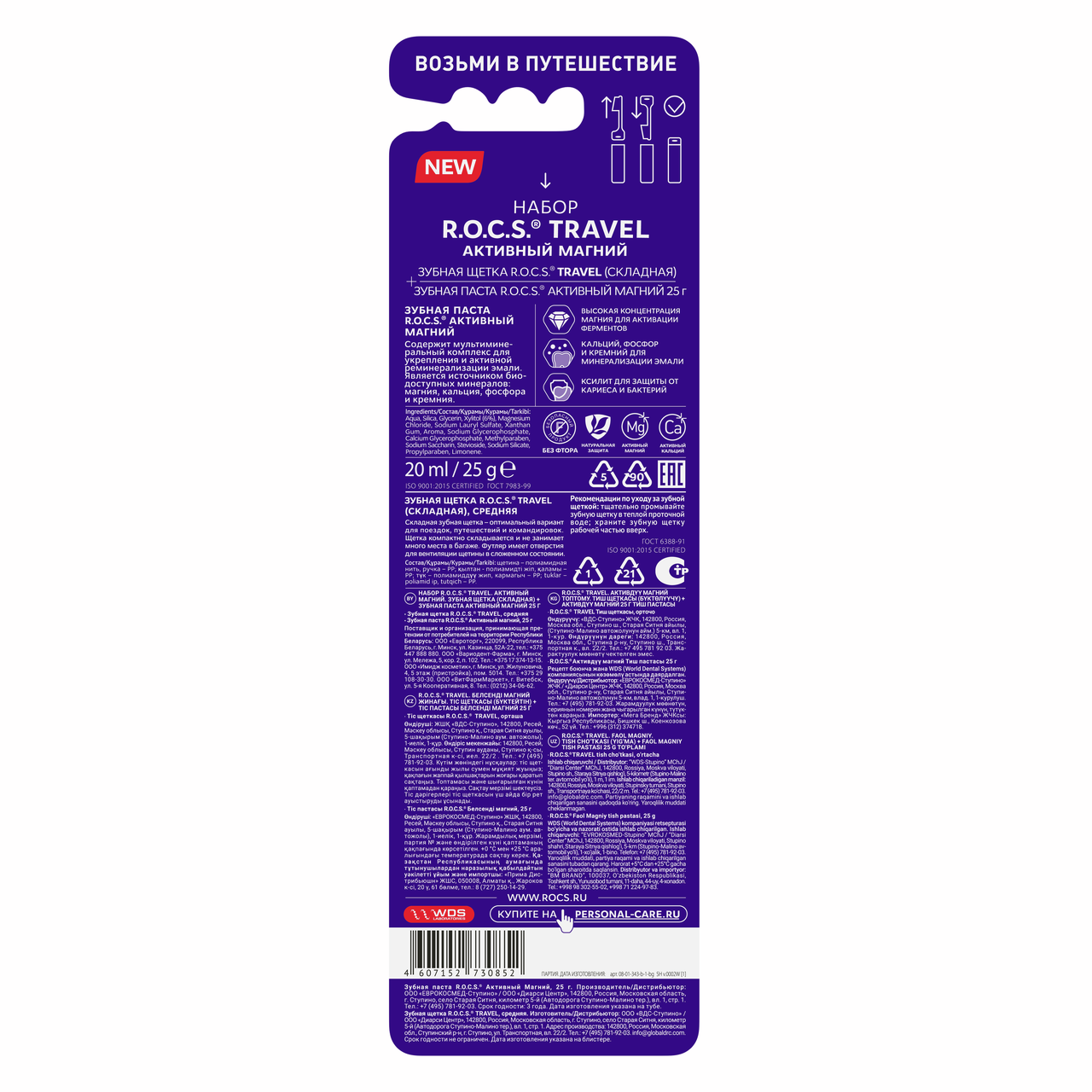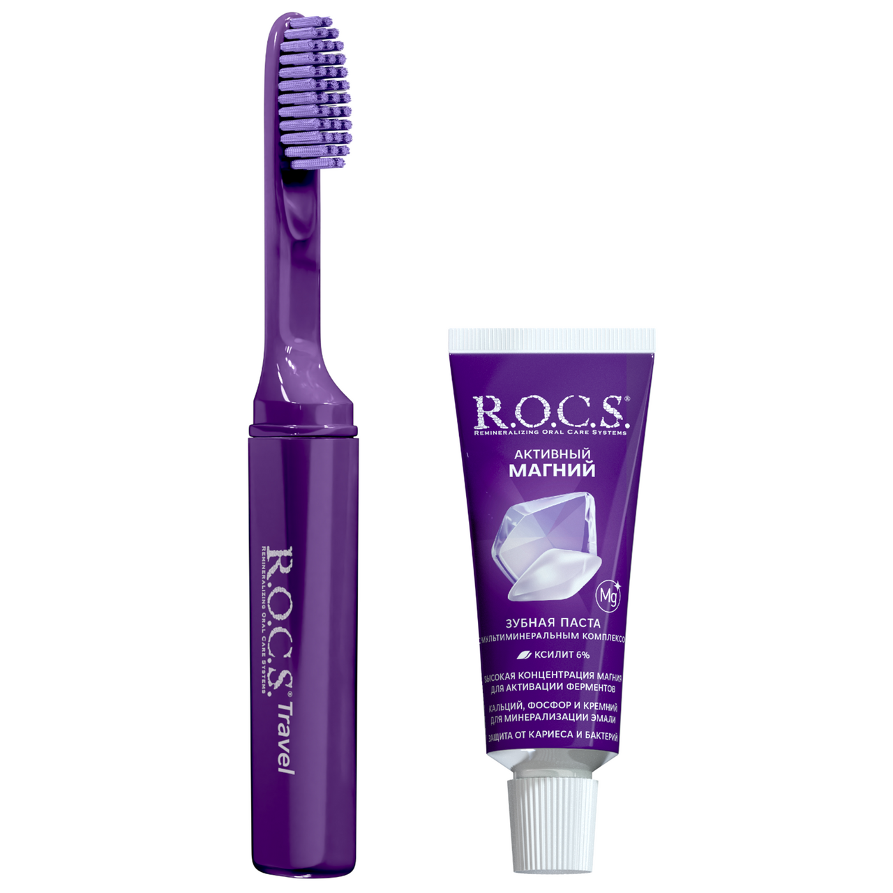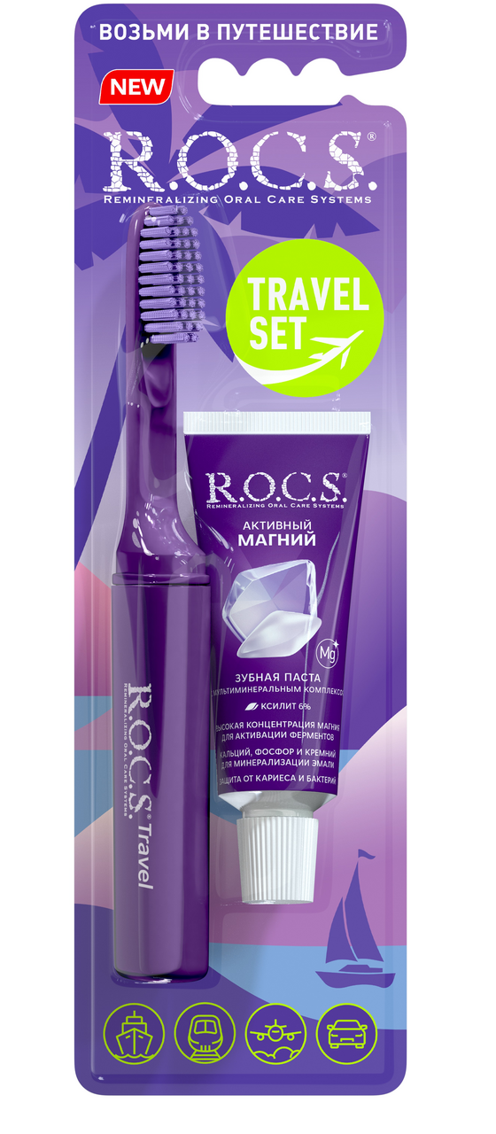 Набор R.O.C.S. Зубная щетка + зубная паста Travel Актив магний