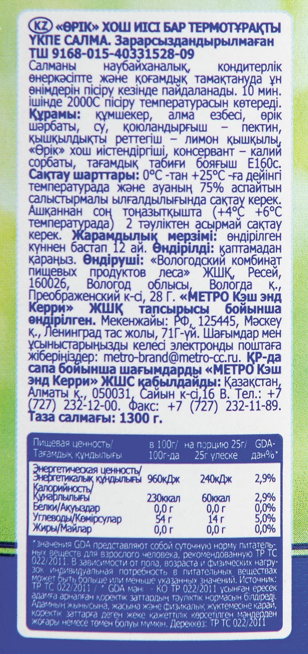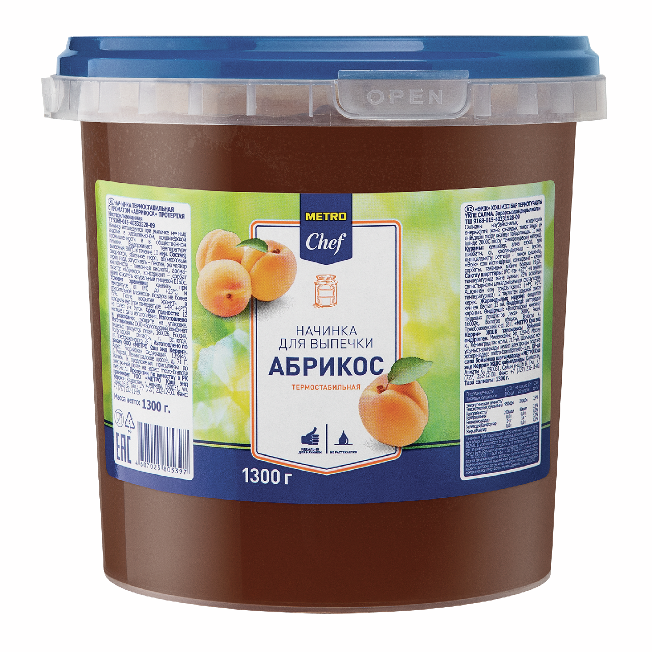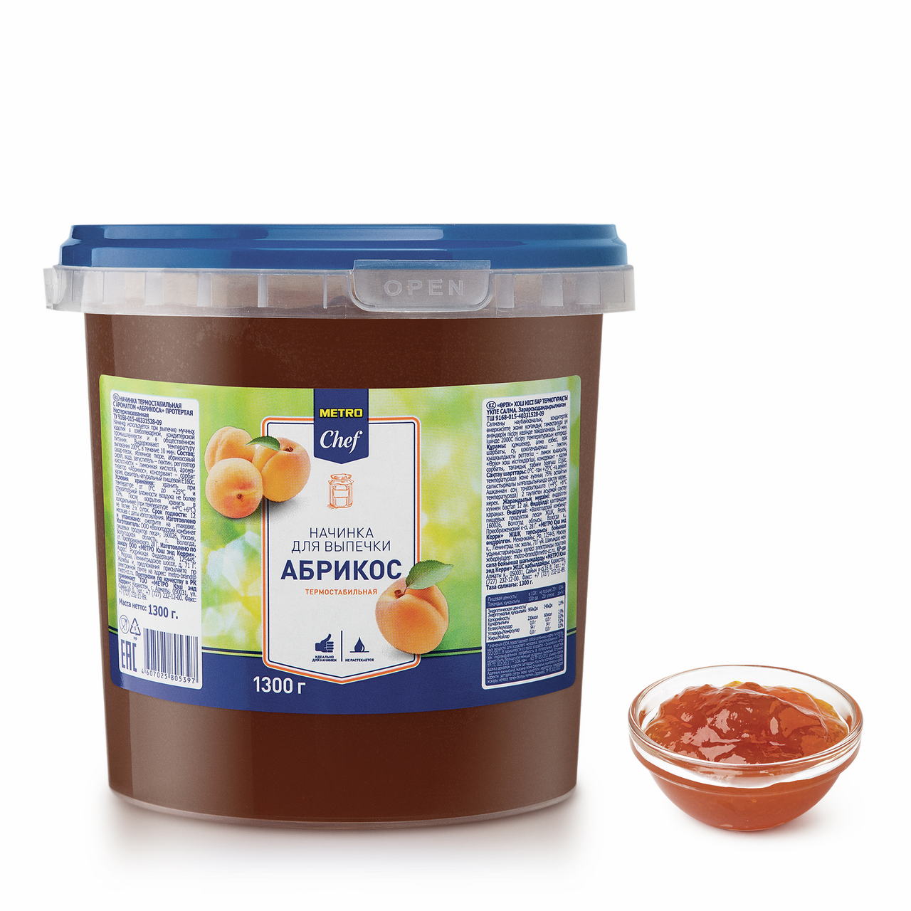 Начинка для выпечки METRO Chef Абрикос широко применяется в хлебопекарном производстве, на предприятиях общественного питания и для создания домашних выпечек. Начинка хорошо сочетается с любыми видами теста и подходит для наполнения открытых и закрытых форм хлебобулочных изделий: печенья, маффинов, пирогов, пряников и других. Термостабильный продукт может выдерживать температуру свыше 200 градусов, его можно добавлять как в процессе приготовления, так и уже в готовое изделие. Начинка не растекается по поверхности и сохраняет форму.