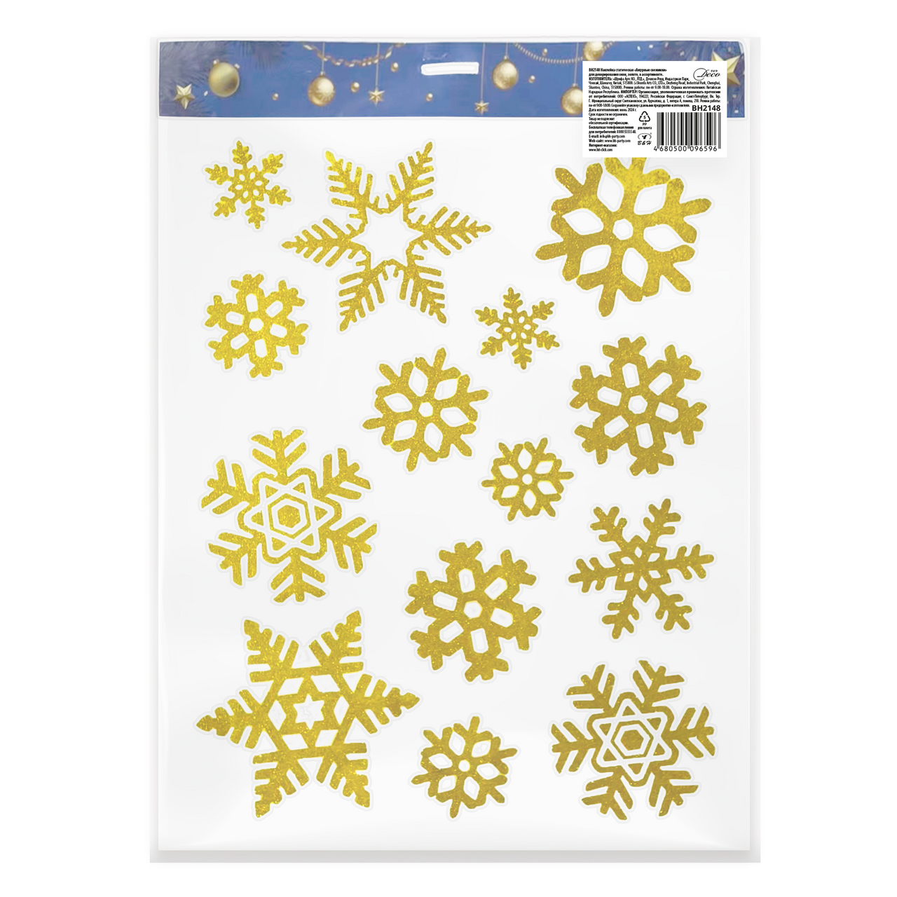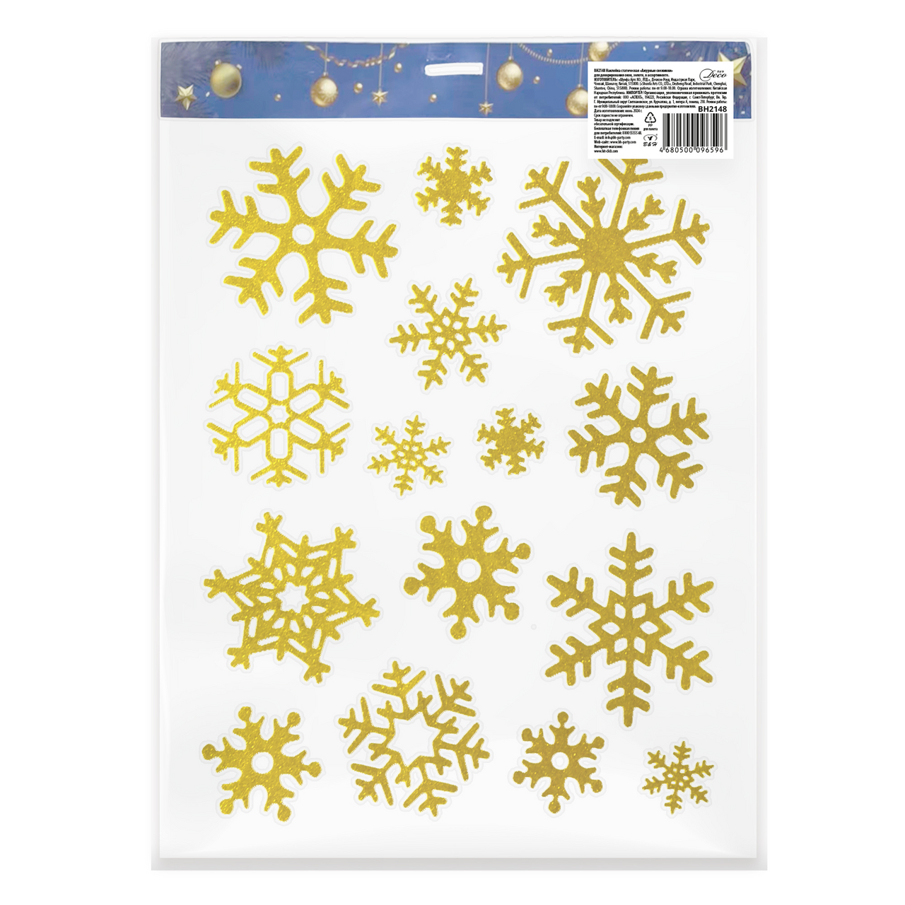 Наклейка B&H для декора ажурные снежинки золото в ассортименте предназначена для декорирования окон, зеркал, стекол, плитки и гладких стен. Может быть использована как для домашнего применения, так и в качестве декора фотостудий и выставочных витрин. Используйте чудесные узоры, составляйте целые тематические композиции, радующие глаз! Картонная подложка наклейки представляет собой раскраску. Готовьтесь к Новому году всей семьей! Изделие не оставляет клеевых следов, не портит поверхность, предназначено для многоразового использования. Оконное украшение декорировано переливающимися блестками. Наклейка выглядит необычайно стильно и празднично.