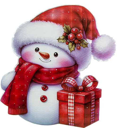 Новогодняя интерьерная наклейка Снеговик с подарком, размер 30.5 x 30.5см