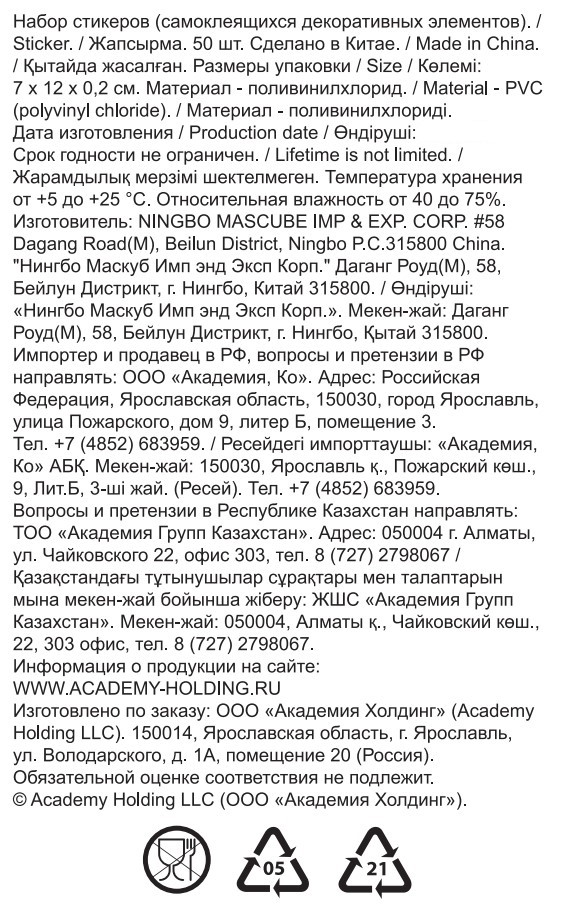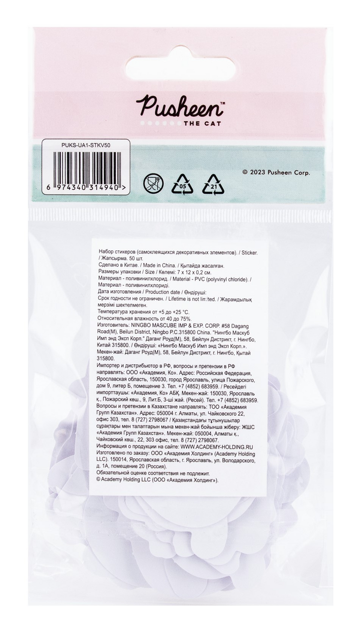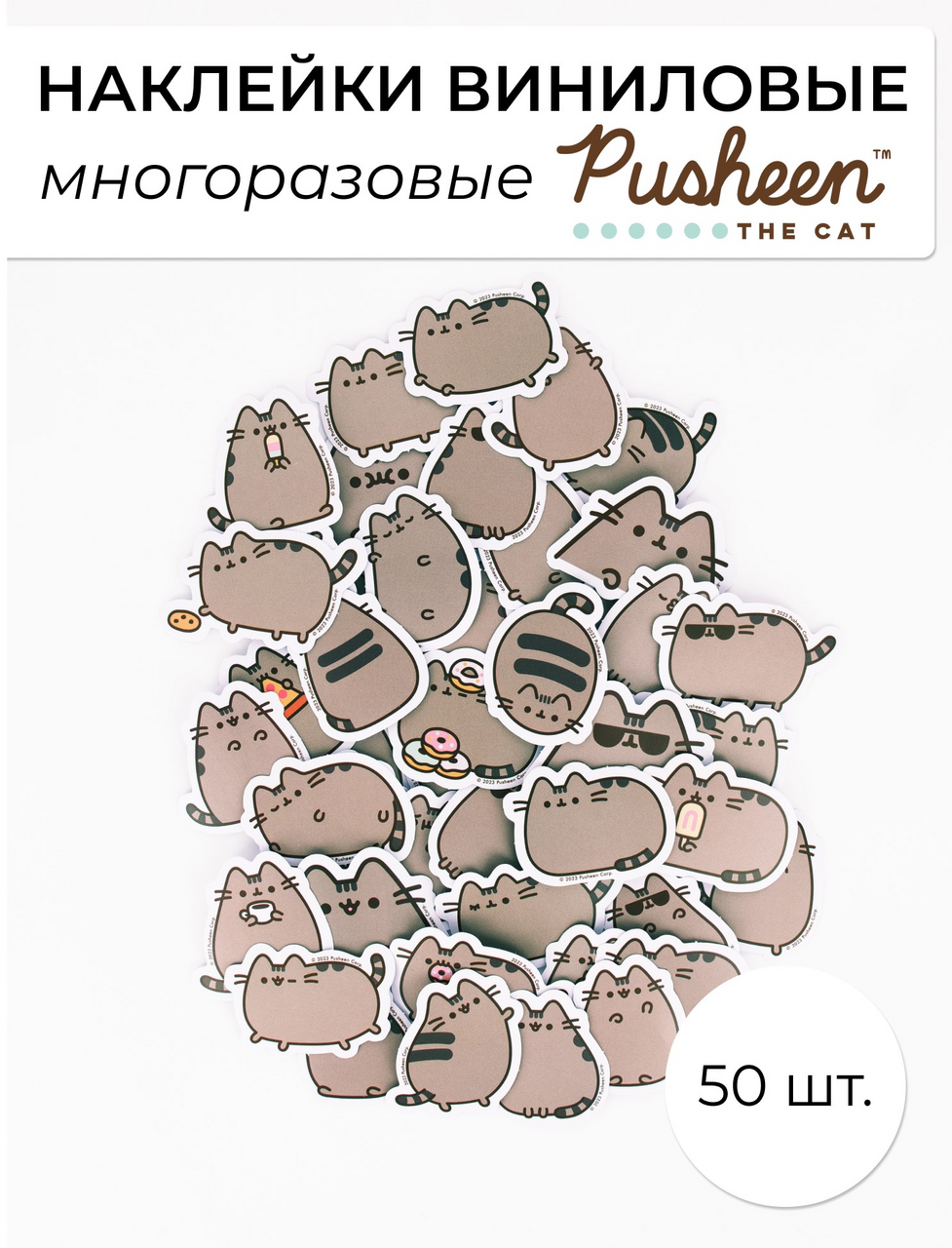 Наклейки Pusheen многоразовые виниловые, 50шт