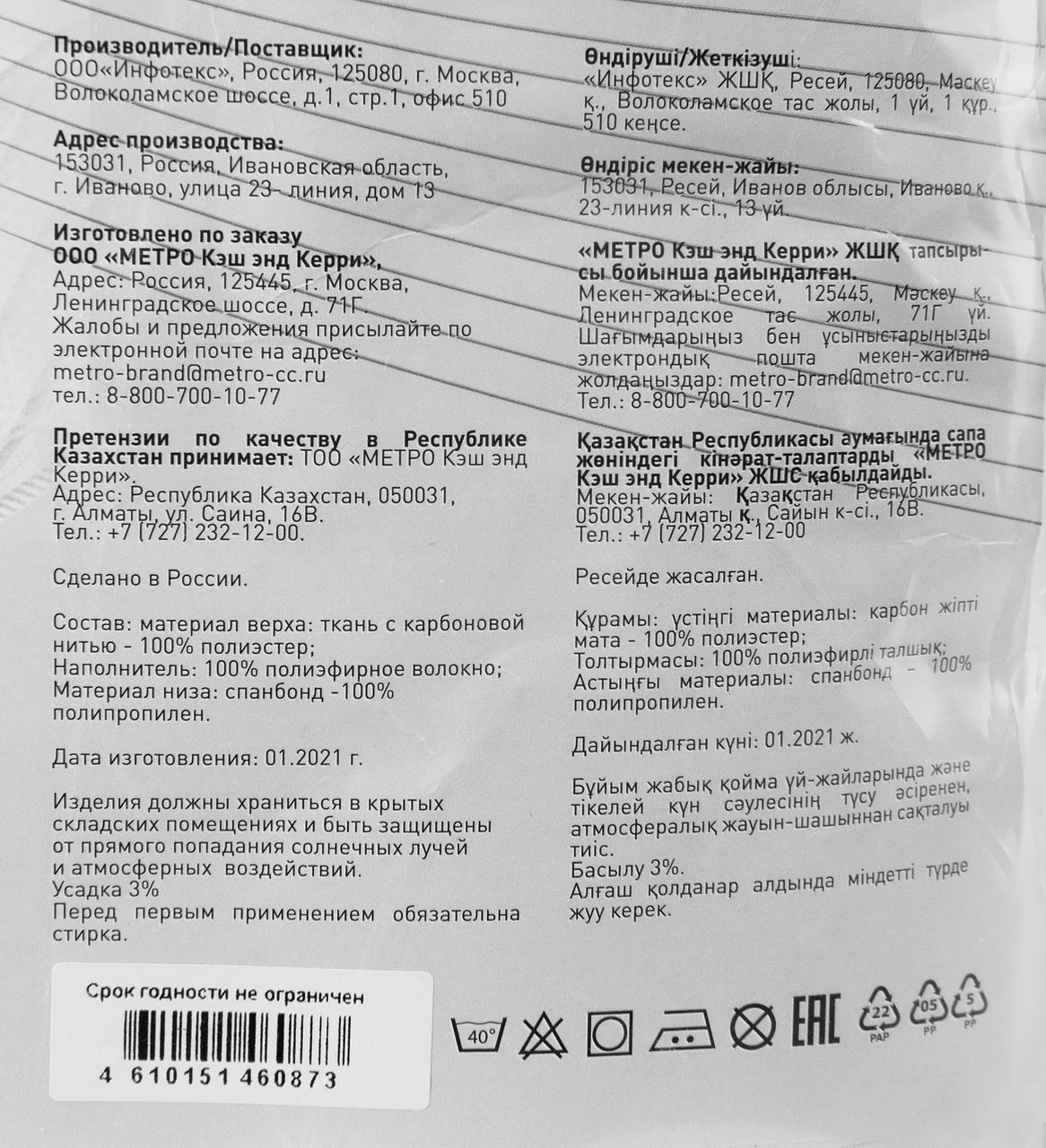 METRO PROFESSIONAL Наматрасник, 90 x 200 см — это неотъемлемая часть вашей спальни и обязательный элемент постельных принадлежностей. Он предназначен для защиты вашего матраса от различных повреждений и обильного воздействия влаги. Особенно полезным он будет для тех, у кого есть маленькие дети, которые могут не всегда быть бережными к мебели. Изделие надежно защитит ваш матрас от потертостей, пятен и других механических повреждений. Наматрасник изготовлен из высококачественных материалов: верхняя часть состоит на 80% из хлопка и на 20% из полиэстера, нижняя часть — из 100% полиуретана. Это обеспечивает мягкость, прочность и долговечность. Одним из преимуществ является его водонепроницаемость. Это означает, что он будет защищать ваш матрас от проникновения влаги, будь то разлитая жидкость или детская пеленка. Он останется сухим и чистым на протяжении долгого времени. Текстильный аксессуар также отличается неприхотливостью в использовании. Он легко стирается и долго сохраняет свои потрясающие свойства при условии соблюдения рекомендаций по температурному режиму стирки. Теперь вы можете наслаждаться комфортом и спокойным сном. Ведь ваш матрас сохранит идеальное состояние на протяжении долгих лет использования.