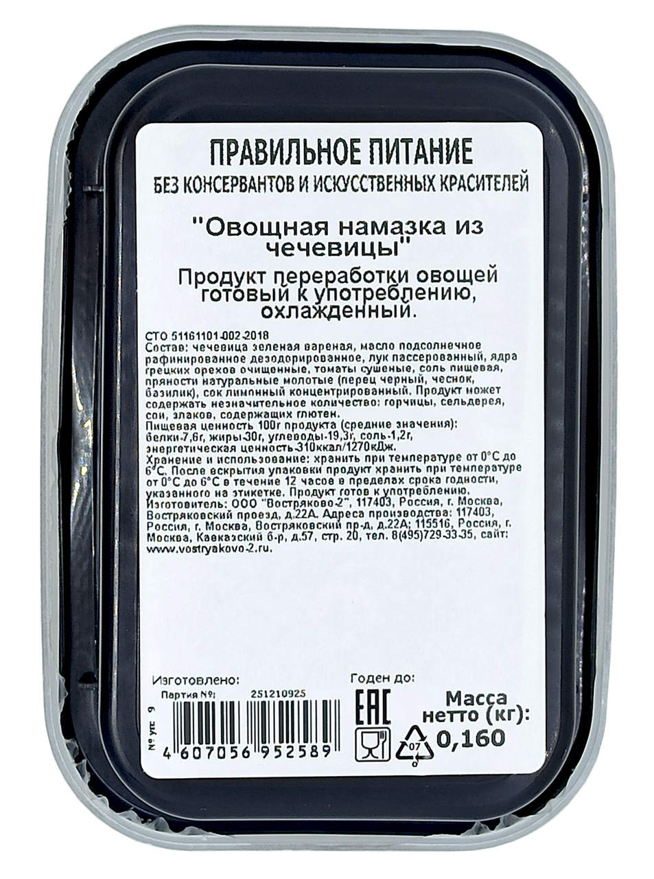 Намазка овощная Востряково из чечевицы, 160г