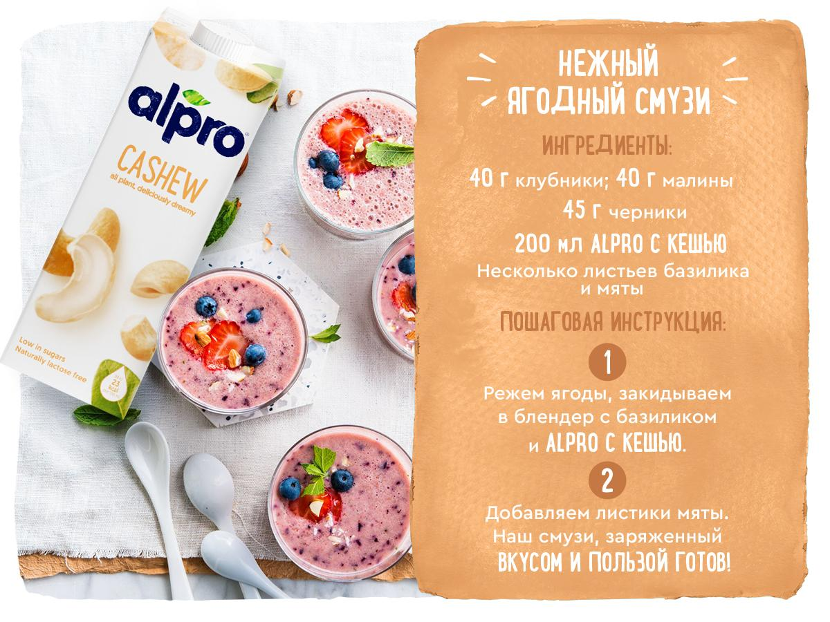 Помогают ли орешки кешью поверить в сказку? Ну, попробовать точно стоит! Ведь именно они делают Alpro Кешью таким сказочно нежным. А еще в нем мало сахара и жиров. Здорово, да? Кроме того, он полезен для здоровья: напиток является источником кальция и витаминов. Ну как такой не любить! Поэтому смело добавляй его к своему завтраку!