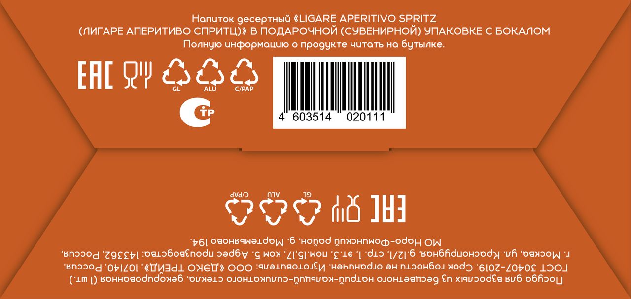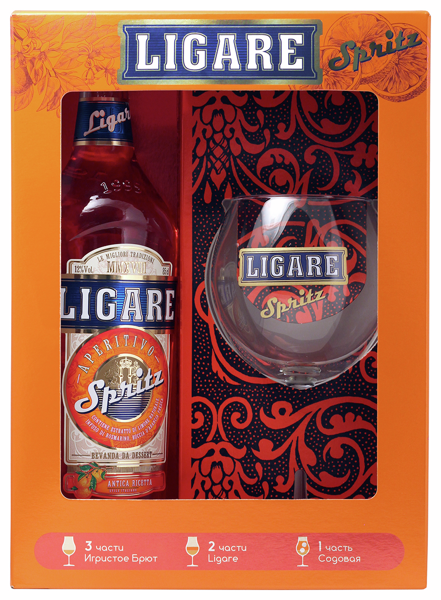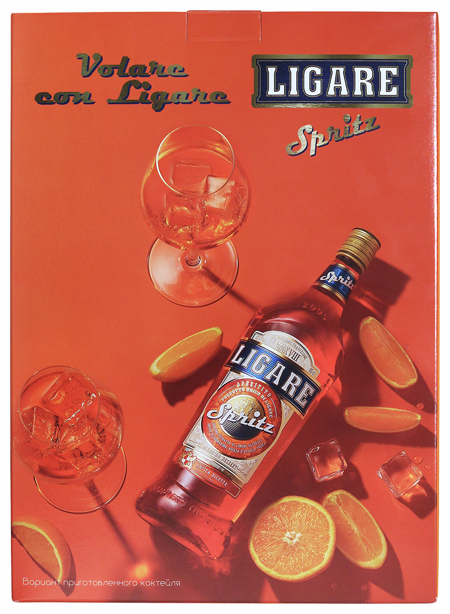 Напиток десертный Ligare Aperitivo Spritz в подарочной упаковке с бокалом, 0.85л