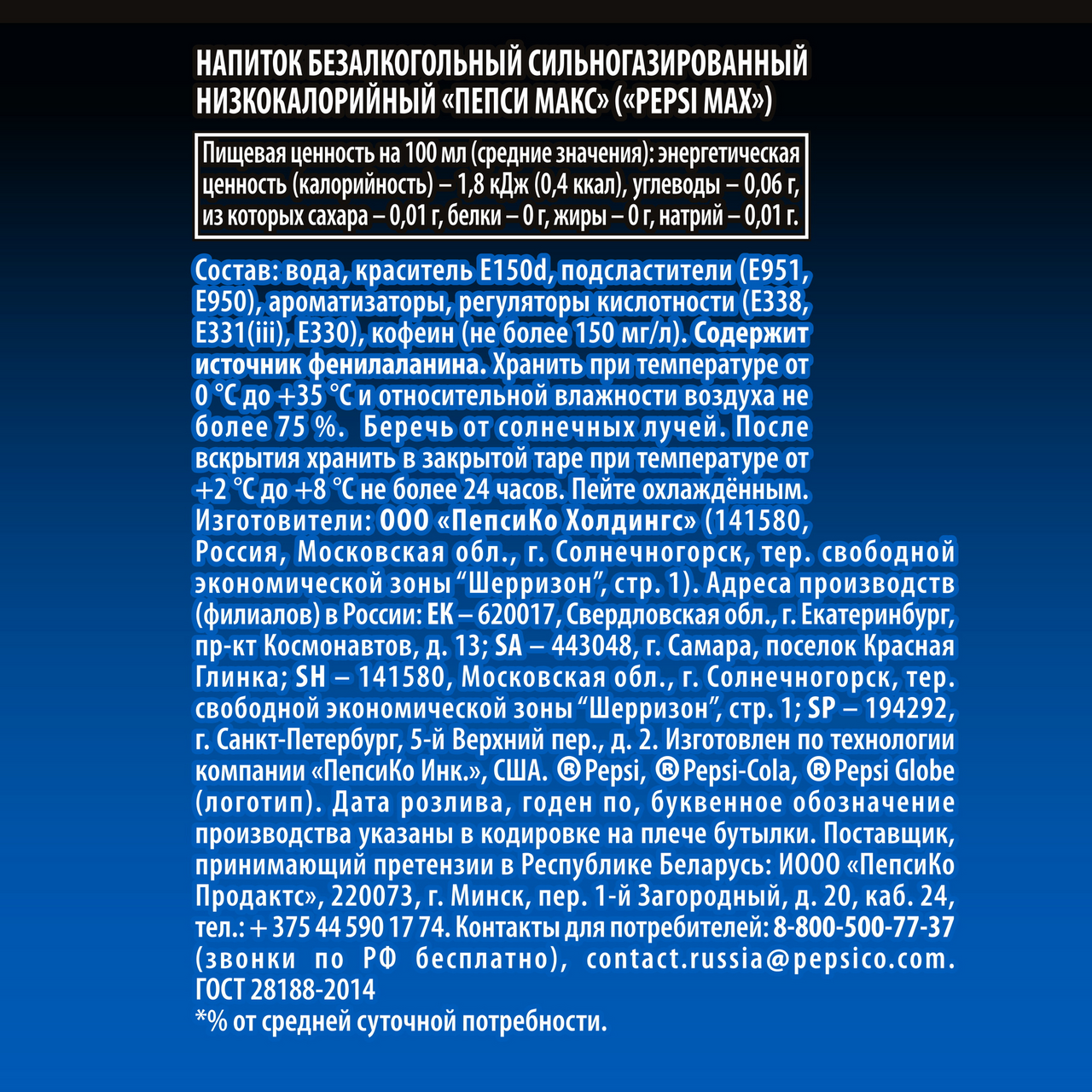 "Напиток Пепси Макс 2л - диетическая версия известного на весь мир безалкогольного прохладительного напитка без сахара и калорий (всего 1.2ккал на 100г)●Максимально насыщенный вкус коллы без сахара●Освежающий●Для отличного настроения и бодрости весь день●Без калорий●Идеальный формат для большой компанииПепси Кола - легендарный напиток, изобретенный фармацевтом К. Бредхемом в 1893 году. Pepsi завоевал популяр��ость по всему миру."