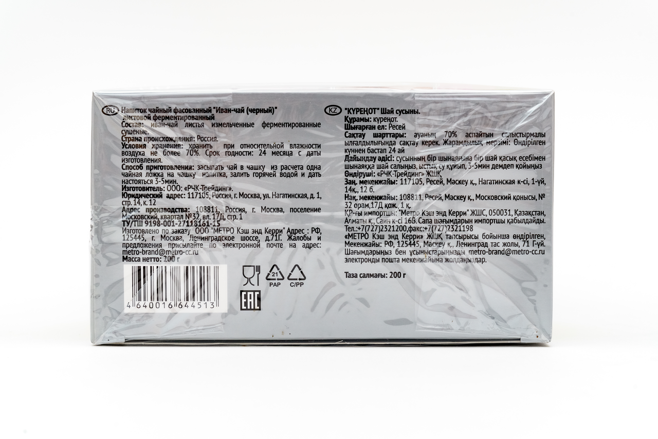 Cостав короба: 4шт. Напиток Иван-чай RIOBA, 200г. Содержит ант��оксиданты и белок, которые легко усваивается. Количество витамина С в листьях Иван-чая в несколько раз выше, чем в лимоне. Иван-чай раскрывает свой вкус и аромат постепенно, демонстрируя богатство вкусовых оттенков и полезных свойств. Состав: Иван-чай листья (Кипрей узколистный). Хранить при температуре не выше 25'С и относительной влажности воздуха не более 75%. После вскрытия хранить в прохладном, защищенном от света месте. Срок годности: 24 месяца