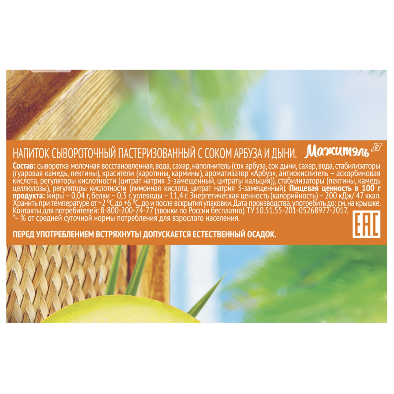 Напиток Мажитэль сывороточный с соком арбуза и дыни 0.03% 950 г