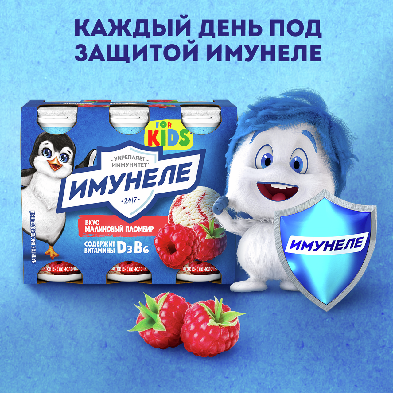 Напиток кисломолочный детский Имунеле For Kids Малиновый пломбир 1.5% с 3 лет, 100г x 6 шт
