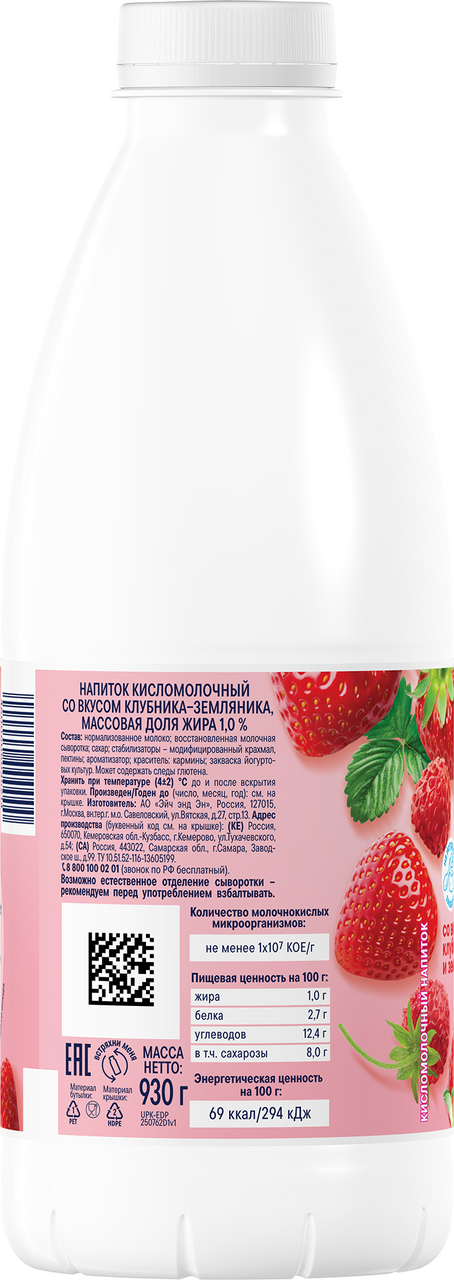 Напиток кисломолочный Для всей семьи клубника и земляника 1%, 930г