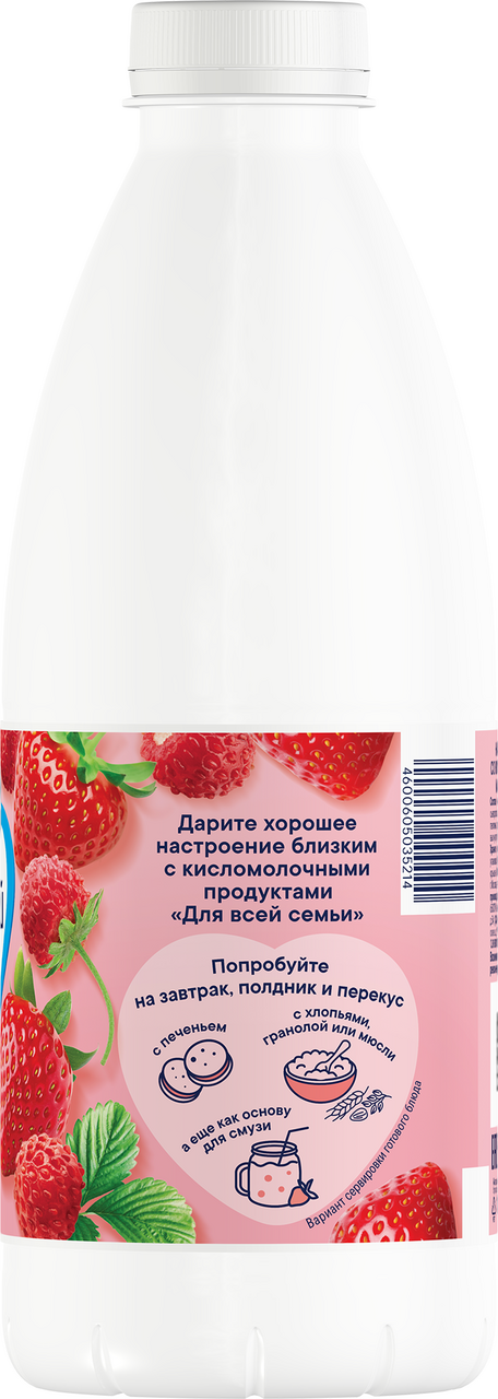 Новинка от бренда Для Всей Семьи. Кисломолочный напиток Для Всей Семьи со вкусом клубники и земляники отлично подходит на завтрак, полдник и перекус. Идеален для самостоятельного перекуса и легкого ужина. Кисломолочный продукт избавляет от тяжести в животе и ускоряет метаболизм. Продукт помогает справиться с чувством голода и зарядиться энергией.