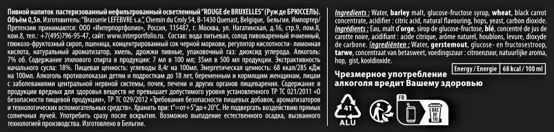 Напиток пивной Rouge De Bruxelles нефильтрованный, 0.5л