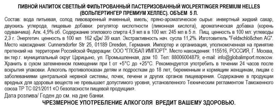 Напиток пивной Wolpertinger Premium Helles, 5л
