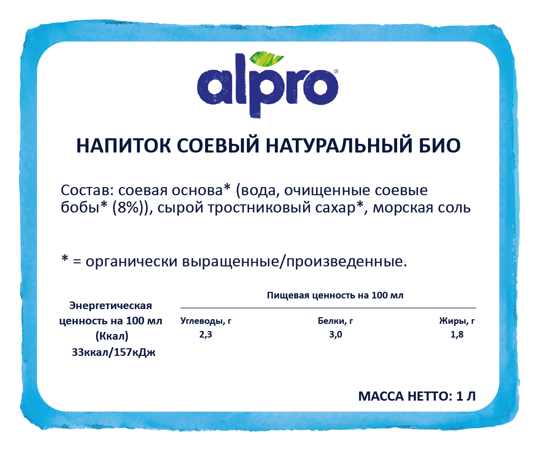Напиток растительный Alpro Био соевый 1.8%, 1л