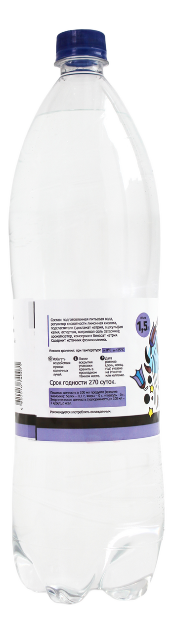 Подготовленная артезианская вода, регулятор кислотности лимонная кислота, подсластители (цикламат натрия, ацесульфам калия, аспартам, натриевая соль, сахаринат), ароматизатор, консервант бензоат натрия.