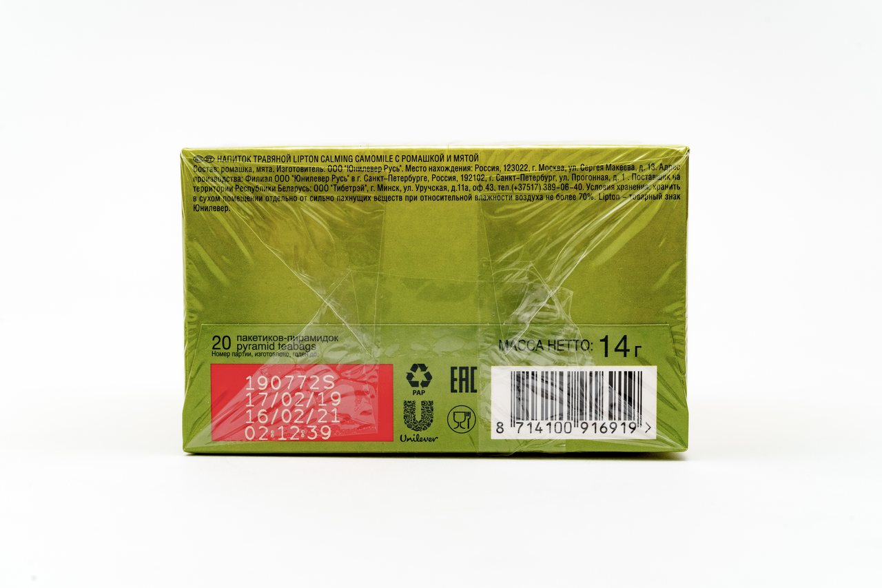 Травяной чай Липтон – идеальное средство, чтобы снять накопившийся стресс и расслабиться после напряженного рабочего дня. Мягкий, тонкий и изысканный вкус и сладкий цветочный аромат окунут вас в мир гармонии, умиротворения и полного спокойствия.Чай в пирамидках Lipton вобрал в себя всю пользу природы, поскольку ромашка и мята издревле известны успокаивающими и целебными свойствами. Они положительным образом сказываются на работе желудка, обладают хорошим противовоспалительным эффектом и замедляют процесс старения. Но главное – ромашка с мятой помогают справиться с бессонницей и спокойнее спать. А хороший сон – залог прекрасного настроения, сияющего внешнего вида и повышенной трудоспособности на протяжении всего дня.Сегодня эти растения пользуются широким спросом и применяются в различных сферах: от косметологии до ароматерапии. Но еще наши далекие предки знали, что такие настои лучше всего употреблять в виде чая, именно так они способны дать больше всего пользы. Чтобы получить максимум эффекта и прочувствовать весь букет, чай травяной в пакетиках Lipton следует заваривать не более 4-5 минут. Удобная форма пирамидок позволяет соцветиям свободно перемещаться в воде, раскрывая тем самым богатый вкус и многогранный аромат замечательного напитка.Lipton знает, что даже маленькие действия приводят к серьезным переменам. В процессе производства компания заботится об окружающей среде. Благодаря используемым ветрогенераторам фабрика ООО Юнилевер Русь в г. Санкт-Петербурге использует только экологически чистую энергию.