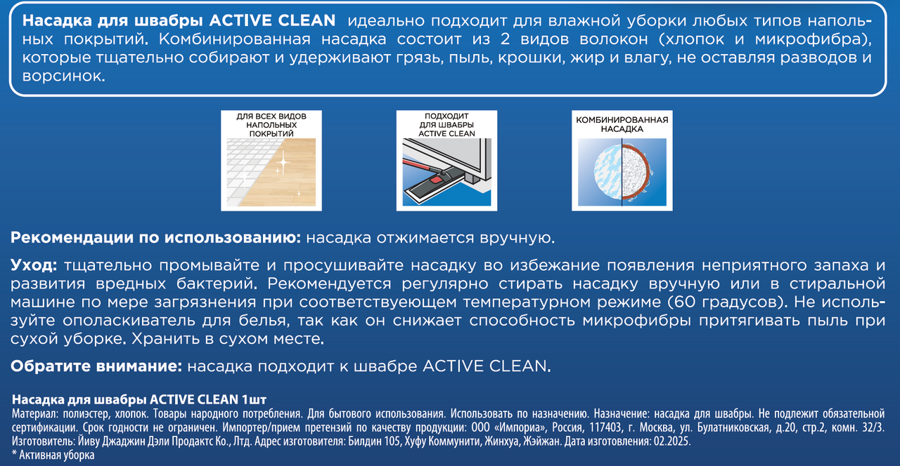 Насадка для швабры Attribute Active Clean