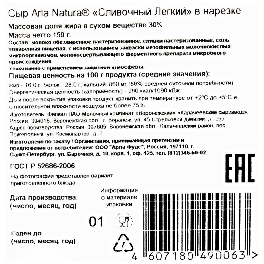 Сыр Arla Natura Сливочный Легкий полутвердый нарезка 30%, 150г