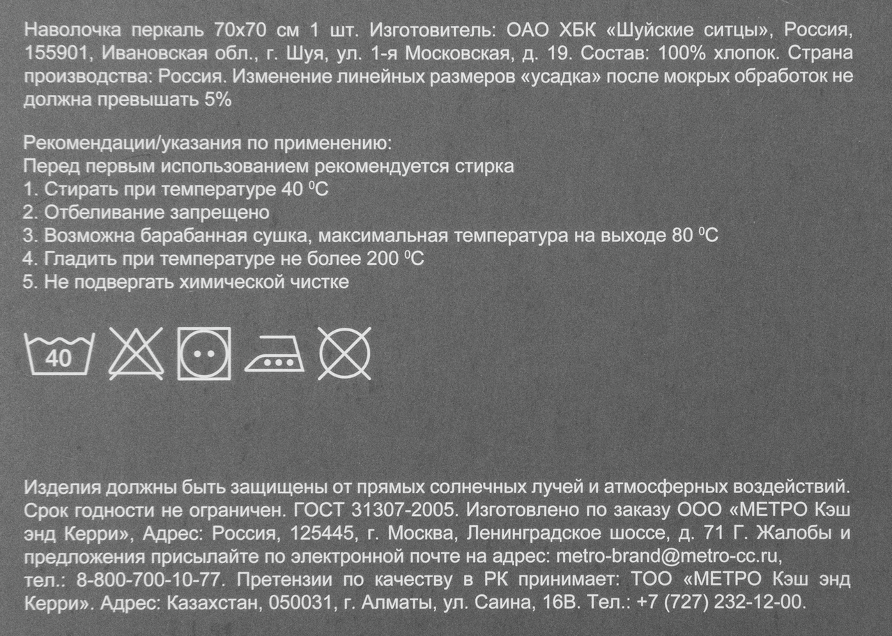 Tarrington House Наволочка графит перкаль, 70x70 см сшита из хлопка высокого качества. Тонкая ткань не скатывается и создает приятные тактильные ощущения, которые обеспечивают комфорт во время сна. Для ухода за перкалью необходимо выбирать температурный режим не выше 40 градусов. Не следует стирать постельное белье из хлопчатобумажных тканей совместно с изделиями из смешанных и синтетических волокон, а также с мохером. Это может стать причиной появления катышек и постельное белье утратит свой опрятный внешний вид. Хлопковый материал хорошо пропускает воздух и подходит даже для очень чувтсвительной кожи. За счет лаконичного цвета такая наволочка будет органично смотреться в любом комплекте постельного белья.