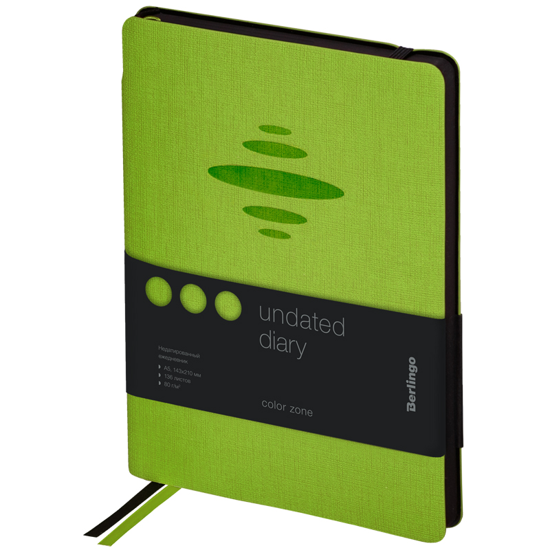 Ежедневник недатированный, A5, 136 л, Berlingo "Color Zone", кожзам, салатовый