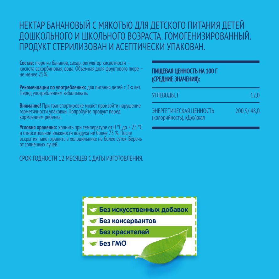 Нектар детский ФрутоНяня Банан с мякотью с 3 лет, 500мл х 12 шт