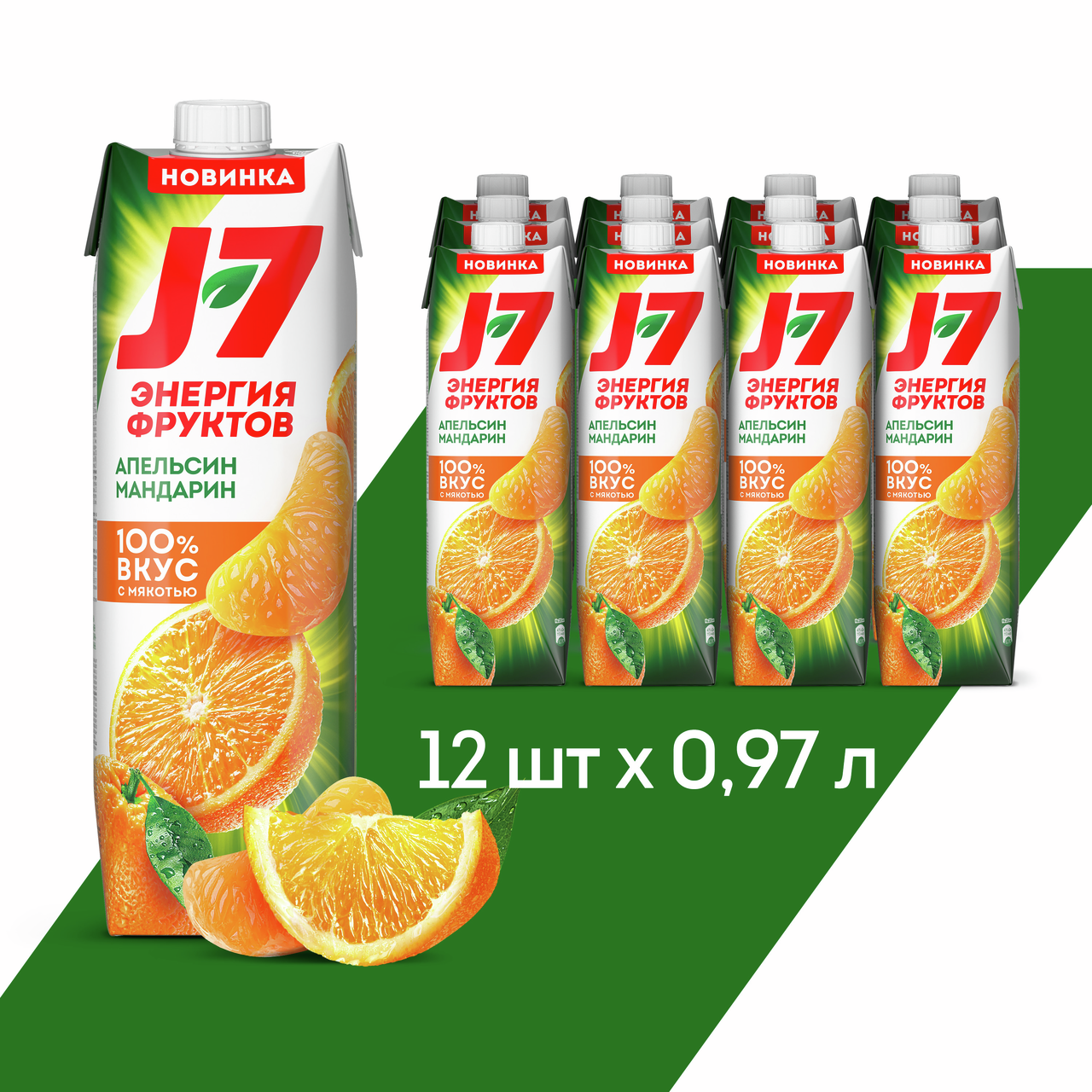 Нектар J7 из апельсинов и мандаринов с мякотью, 970мл х 12 шт