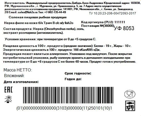 Нерка Fish2O филе на коже бескостная слабосоленая, ~1кг