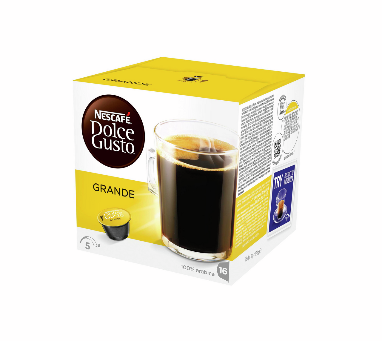 Состав короба: 1шт. Кофе Нескафе Dolce Gusto Espresso Intenso, 128 г. Кофе жареный молотый. Арабика + робуста. Только для кофе-машин Dolce Gusto. Хранить в сухом прохладном месте при температуре не более 20'С и относительной влажности не более 75%. Срок годности: 12 месяцев.