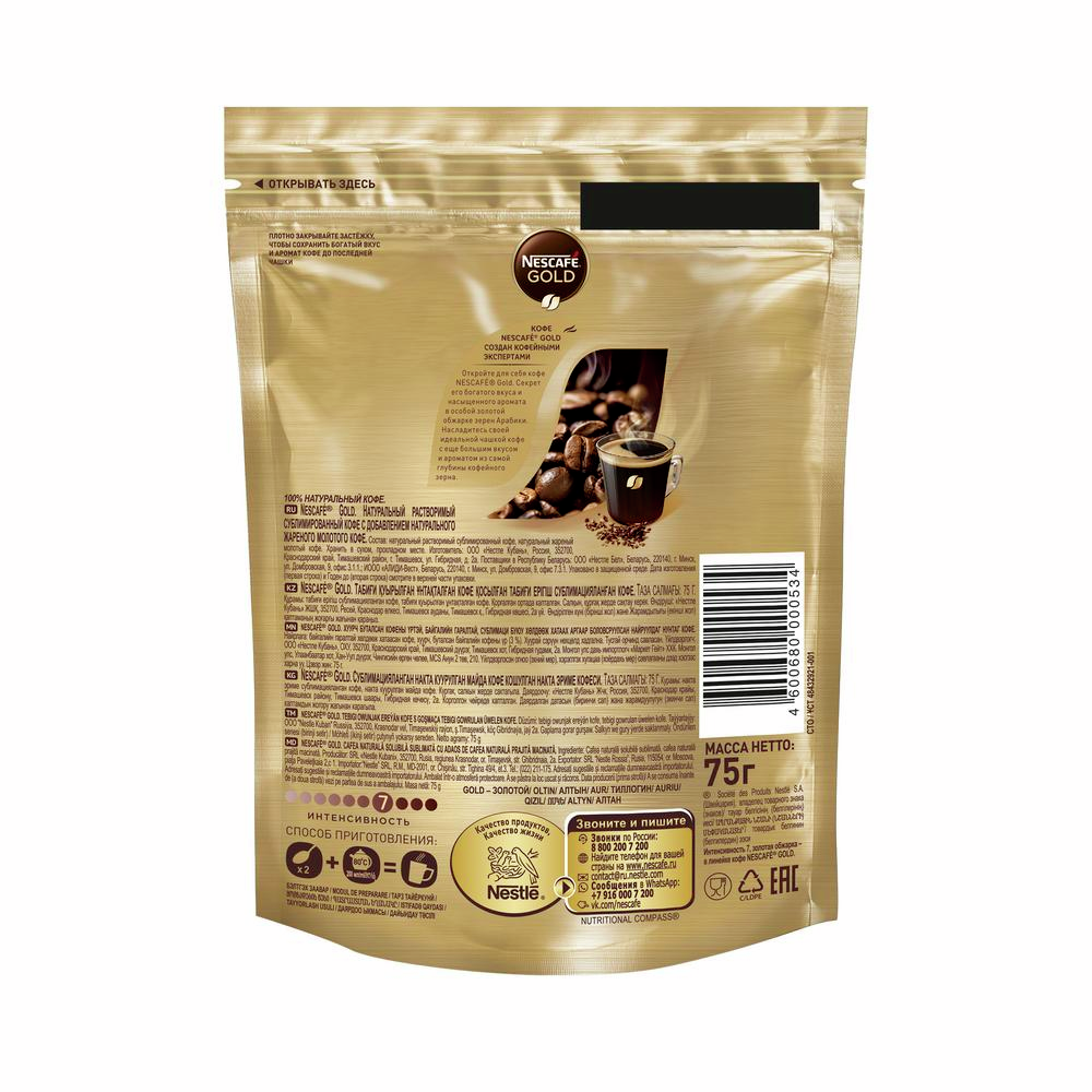 Кофе Нескафе Голд растворимый, 75г