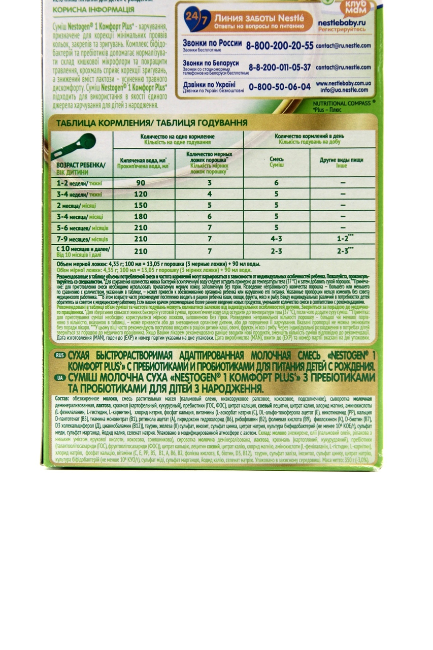 Nestogen 1 Комфорт PLUS сухая быстрорастворимая адаптированная молочная смесь с пребиотиками и пробиотиками для питания детей с рождения 350 г