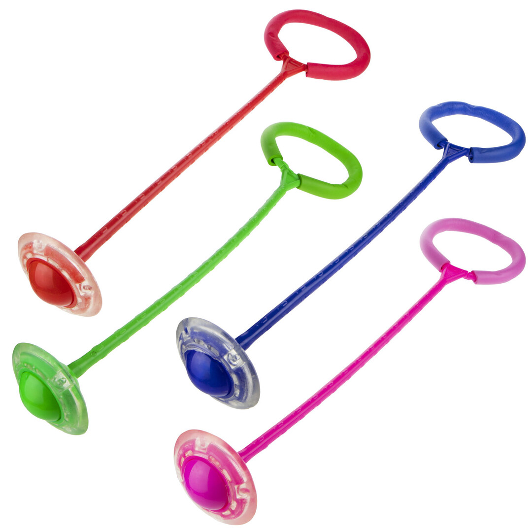 Нейроскакалка представляет собой ось со светящимся LED-колесом на конце и кольцом, которое нужно крутить на ноге, перепрыгивая через ось. Стержень скакалки изготовлен из прочного пластика, который абсолютно безопасен для детей. Для защиты голеностопа на кольцо одевается поролоновая трубка. Колесико на конце скакалки изготовлено из каучука, при раскручивании светится.
