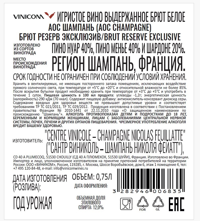 Шампанское Nicolas Feuillatte Brut Reserve белое брют, 0.75л культовое шампанское, которое идеально выражает стиль Дома Николай Фейят и представляет все наименования региона Шампань. Буквально каждый сантиметр Шампани объединяется, чтобы показать великолепное, свежее и яркое шампанское, источающее интенсивные, выразительные фруктовые ноты, в то время как длительная выдержка в подвалах Дома приносит его идеальному стилю привлекательную зрелость. Простое по своей сложности, оно невероятно универсально и является превосходным партнером для закусок перед ужином, заключая в себе истинный дух шампанского, доведенного до совершенства.