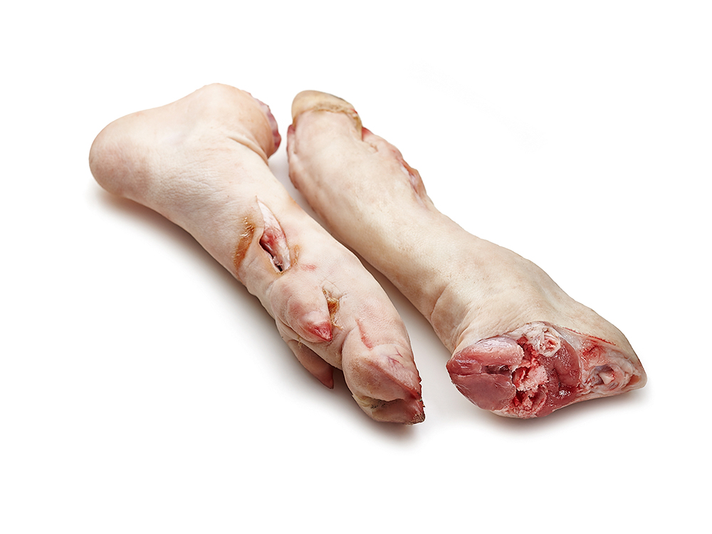 Свиные ноги (вакуумная упаковка) – это нижняя часть свиной ноги с копытом, которая является прекрасной основой для холодца. Классические пряности придадут мясу и бульону особый аромат. При длительном варении сухожилия продукта дают отличный желирующий эффект, благодаря чему добавлять агар или желатин в холодец не потребуется. Натуральное мясо светло-розового цвета не содержит усилителей вкуса или искусственных добавок. При этом такой продукт обладает богатым химическим составом. Он содержит такие необходимые для человеческого организма минеральные вещества, как калий, магний, кальций, хром, железо и др. Кроме холодца, свиные ноги используют для приготовления и других блюд. В частности, их нередко тушат и запекают. В процессе приготовления используются дополнительные ингредиенты, которые придают готовому блюду особый вкус – это хрен, черный и душистый перец, лавровый лист, сухой базилик, гвоздика.