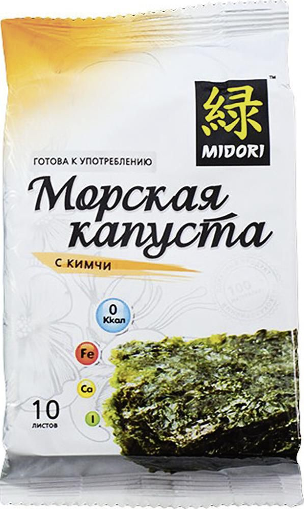 Чипсы нори Midori Кимчи — острый вариант классического продукта из листьев морской капусты, напоминающего бумагу. Засушенные и обжаренные до хруста в оливковом масле пластины обильно приправлены жгучим перцем, чесноком и имбирем. Нори являются одним из символов корейской и японской кухни и служат основой многим блюдам. Чипсы Midori могут употребляться как отдельно, так в качестве компонента для суши или лапши на бульоне. Они оптимально подходят для того, чтобы в домашних условиях самостоятельно осваивать технику приготовления роллов. Потренируйтесь, а потом пригласите в гости друзей и удивите их своим искусством.
