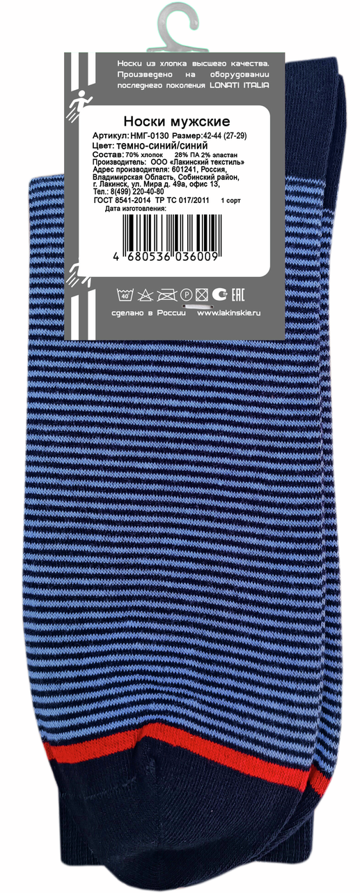 Носки Marso Классика НМГ-0130 мужские темно-синие-синие размер 27-29 - однотонные носки произведены с использованием гребенного хлопка высокого качества. Мягкая двубортная резинка позволяет носку хорошо сидеть на ноге и не сползать, он плотно прилегает, обеспечивая максимальный комфорт при носке. Хорошо держат форму и обладают воздухопроницаемостью. Усиленные мысок и пятка придают носку более высокую износостойкость. Не линяют после многочисленных стирок.