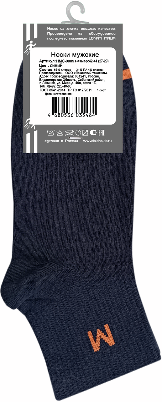 Носки мужские Marso синие спортивные хлопок-полиамид НМС-0009 размер 27-29