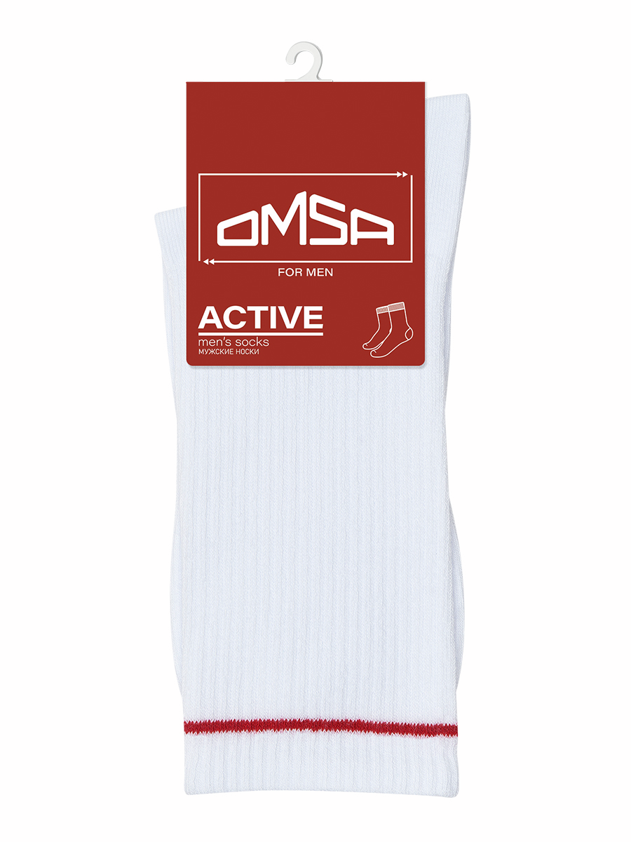 Носки мужские Omsa Active 115 Высокие полоска хлопок 75% белые-красные размер 42-44