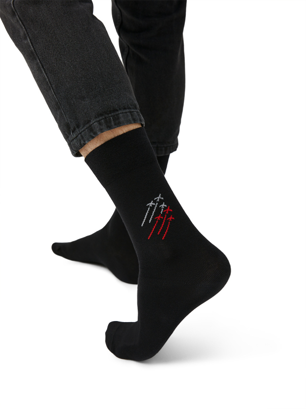 Носки мужские Omsa Style Самолеты хлопок 75% 509 черные размер 45-47 - мужские носки с рисунком самолеты. В составе - высококачественный хлопок, который позволяет коже дышать, отлично впитывает влагу и подходит даже для самой чувствительной кожи, и эластан, который обеспечивает превосходное облегание. Кеттельный (плоский) шов на мыске и мягкая резинка создают дополнительный комфорт. Удобные повседневные носки, которые отлично подойдут на каждый день, и станут отличным подарком на праздники благодаря тематическому рисунку.