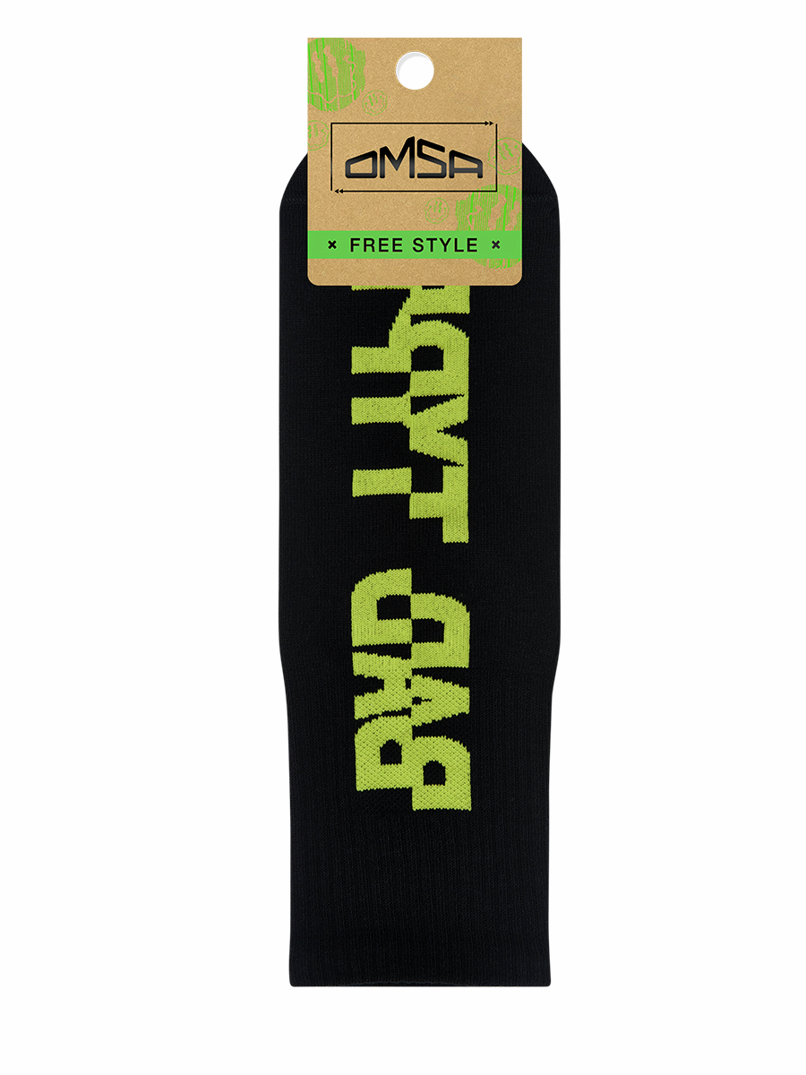 Носки Omsa Freestyle 600 c высокой резинкой и сленговыми надписями. В составе - высококачественный хлопок, который позволяет коже дышать, отлично впитывает влагу и подходит даже для самой чувствительной кожи. Добавление эластана обеспечивает превосходное облегание. Удобная широкая резинка и кеттельный (плоский) шов на мыске создают дополнительный комфорт. Omsa Free Style - это имиджевый аксессуар, который идеально дополнит Family look, и идеально подойдет и для неё, и для него. Сочетание высокой резинки и популярных сленговых выражений - это востребованный тренд, который бьет все модные рекорды этого сезона.