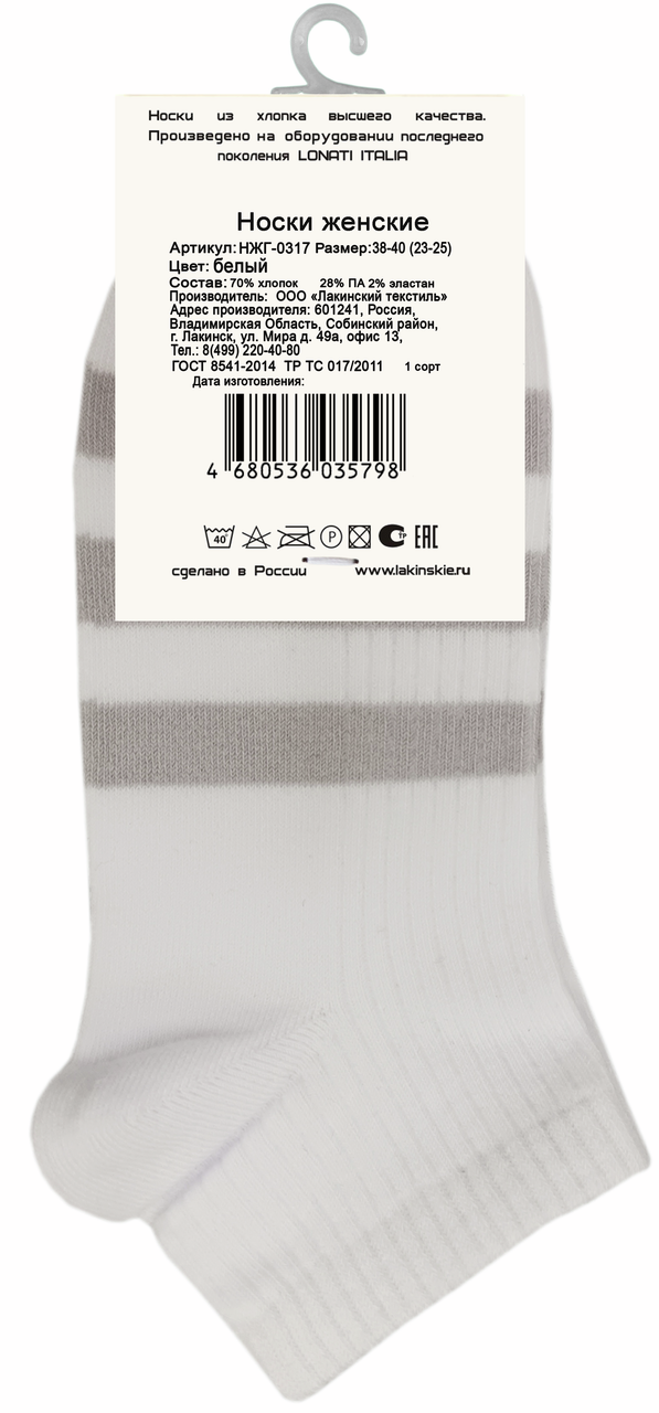 Носки женские Marso НЖГ-0317 короткие белые, р. 38-40