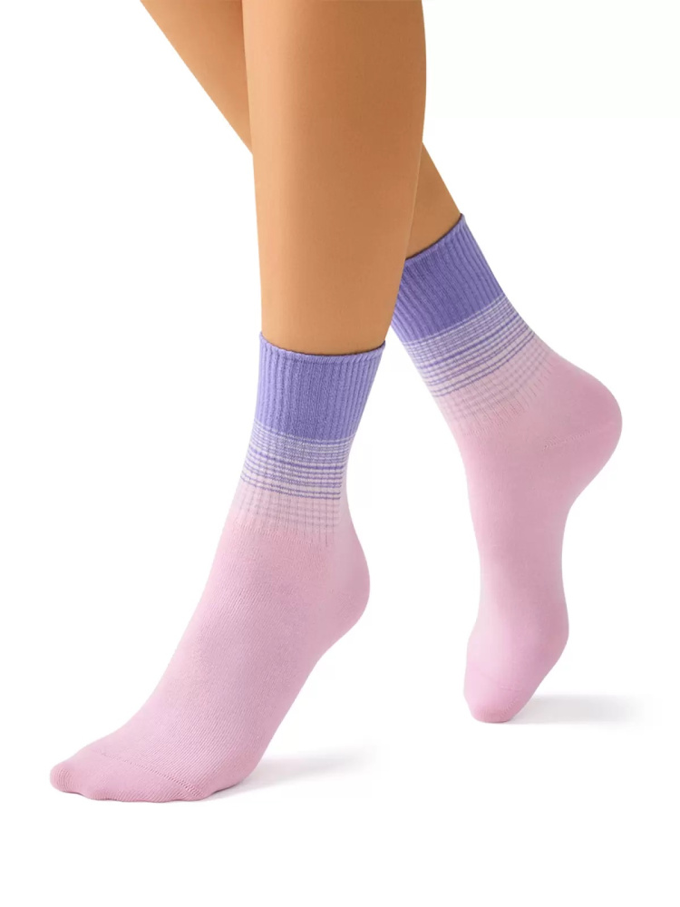 Носки женские Omsa Градиент хлопок 75% розовые Style 554 размер 35-38 - женские высокие носки Style 554 с красочным градиентом на резинке. В составе – высококачественный хлопок, который отлично пропускает воздух, впитывает влагу, и подходит даже для чувствительной кожи. Добавление эластана обеспечивает превосходное облегание. Удобная широкая резинка и кеттельный (плоский) шов на мыске создают дополнительный комфорт. Эффектный цветной градиент в сочетании с высокой резинкой создает модный и оригинальный акцент в образе. Такой аксессуар будет привлекать внимание, и сделает аутфит более самобытным.