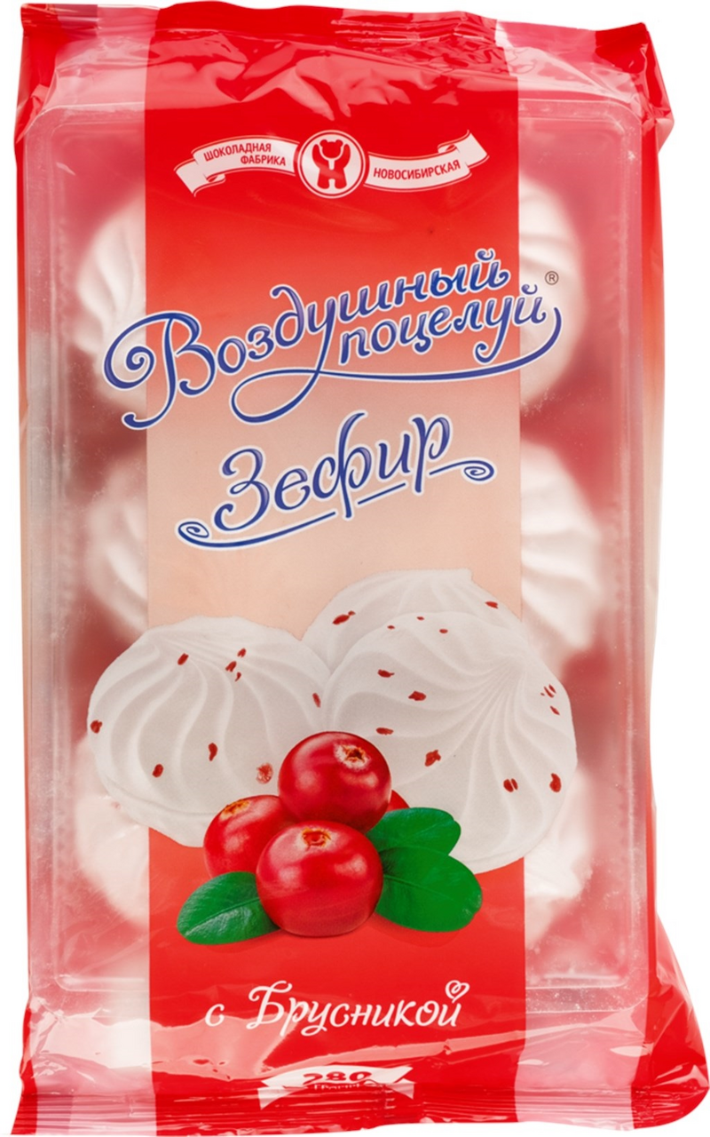 Зефир Новосибирская шоколадная фабрика Воздушный поцелуй с брусникой, 280г – это сладость, изготовленная из натуральных ингредиентов, которая может порадовать любого сладкоежку. Лакомство имеет воздушную структуру, маленькую калорийность и легкий вес. Нежный зефир с неповторимым вкусом приведет в восторг как детей, так и взрослых. Десерт обладает привлекательным внешним видом и станет настоящим украшением праздничного стола. На этикетке с фирменным логотипом производителем размещена информация о полном составе, энергетической ценности (белки, жиры и углеводы, калорийность), дате изготовления, иные важные сведения, имеющие значение для покупателя. Конфеты и зефир – неотъемлемая часть подарка на Новый год. Им обрадуются взрослые и маленькие сладкоежки. К тому же это отличная альтернатива калорийным пирожным и тортам и хорошая идея для похода в гости.