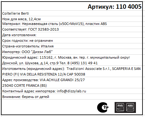 В 1895 году Дэвид Берти, талантливый итальянский ремесленник, открыл небольшую мастерскую Coltellerie Berti, где создавал уникальные ножи ручной работы. Компания Coltellerie Berti изготовляет ножи исключительного качества, ведь все секреты и тонкости мастерства передаются из поколения в поколение на протяжении почти ста лет.Ножи изготовлены из высококачественной немецкой стали, что гарантирует эффективность и долговечность. Все изделия изготавливаются вручную. - Рукояти ножей, даже если они сделаны из пластика, не формуются, а изготавливаются из холоднокатаных пластин и обрабатываются вручную по отдельности. Каждое лезвие, помимо закалки, также подвергается субохлаждению до -80С, что обеспечивает максимальный срок его службы. Изготовлен из хорошей нержавеющей стали. Ручка удобная и лёгкая, выполнена из прочного пластика.