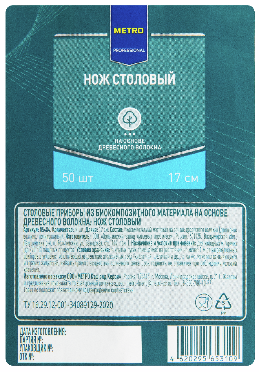 METRO PROFESSIONAL Нож одноразовый из древесного волокна 16.8см, 50шт