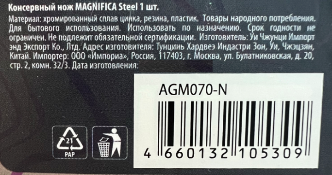 - Комплектация Нож консервный - 1 шт.