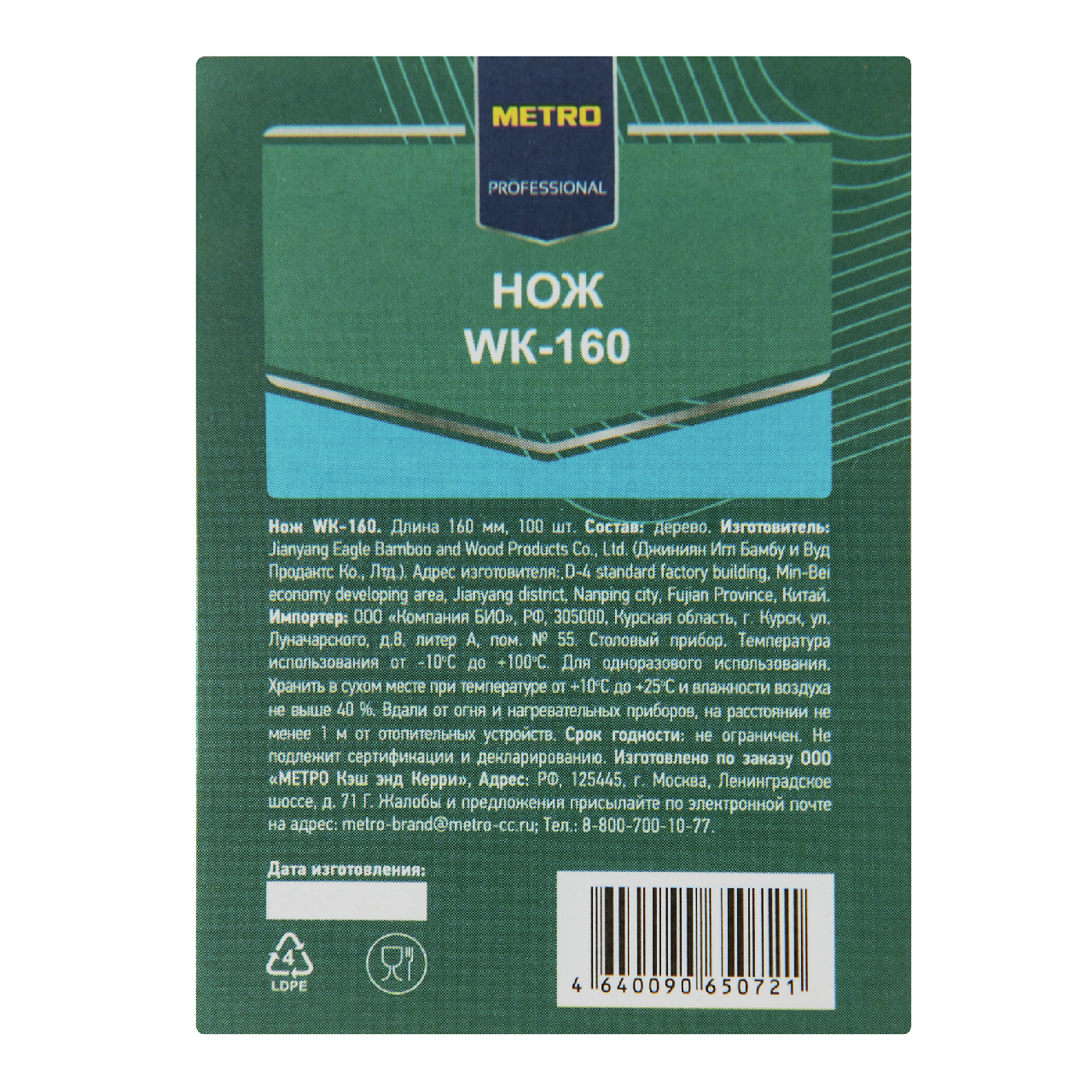 METRO PROFESSIONAL Нож одноразовый деревянный 16см, 100шт
