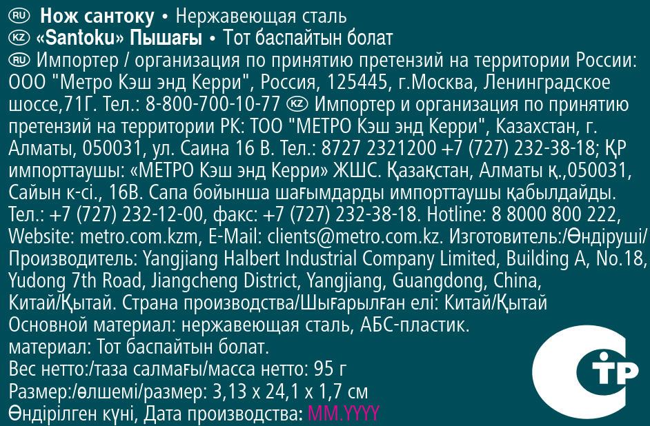 METRO PROFESSIONAL Нож сантоку 13см - это отличное приспособление, которое подходит для разнообразных задач как в профессиональной среде, так и в процессе приготовления блюд дома. Лезвие ножа изготовлено высококачественной нержавеющей стали, которая отличается прочностью и долговечностью. Имеет удобную эргономичную ручку. Длина клинка составляет 13 сантиметров, что позволяет легко и эффективно справляться со многими кухонными задачами. Нож удобен в использовании и обладает достаточно прочной конструкцией, однако его не рекомендуется мыть в посудомоечной машине.