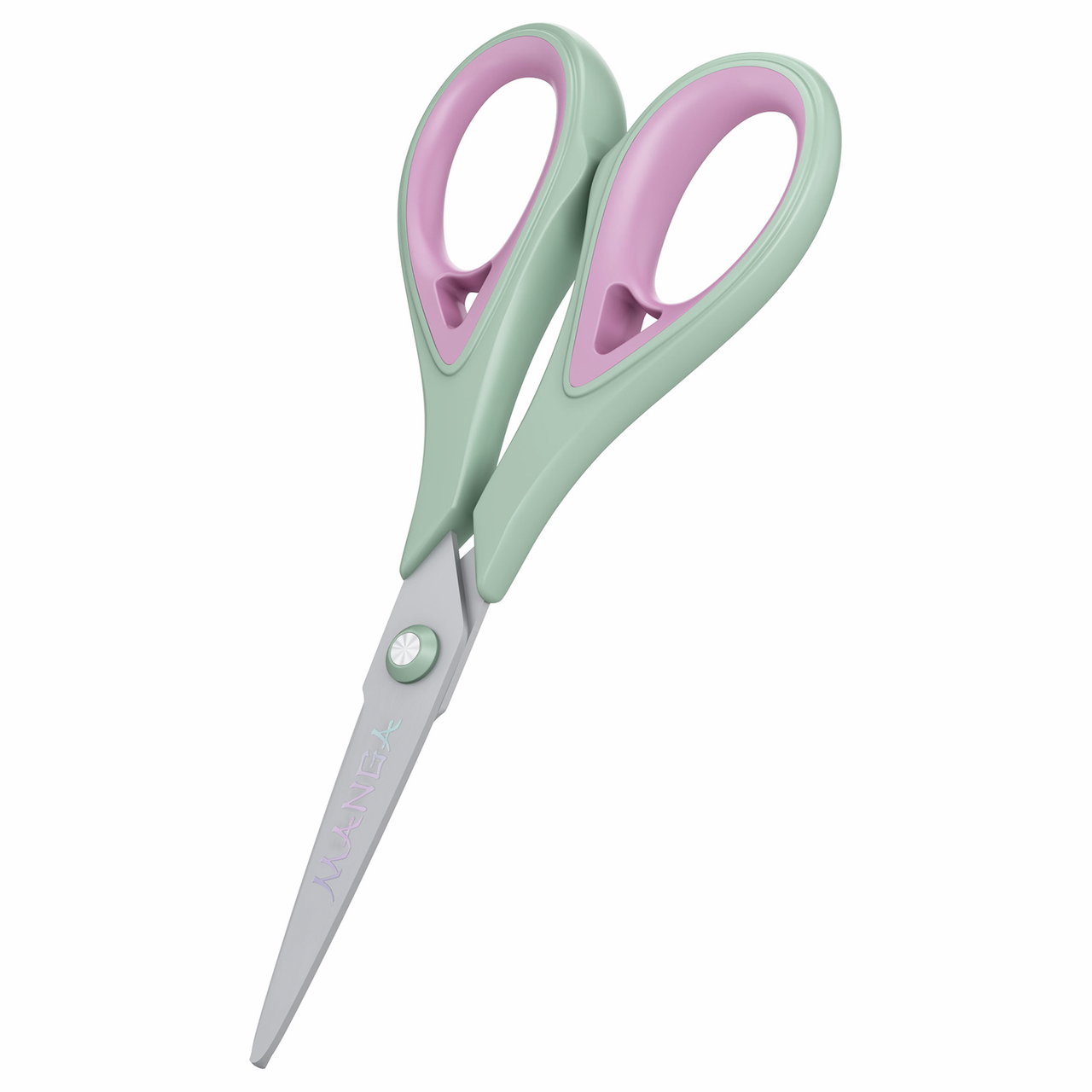 Ножницы из высококачественной нержавеющей стали. Форма лезвий имеет усовершенствованную дугообразную форму с улучшенной двойной заточкой-рез в одно движение даже плотного картона. Ручки классической формы с антискользящими резиновыми вставками.
