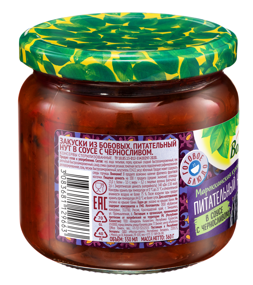 Питательный нут в соусе с черносливом - это очень сытное и полезное блюдо, ведь нут богат белком, а его предварительное замачивание обеспечит легкое пищеварение. Нут в соусе с черносливом можно употреблять как самостоятельное блюдо из-за его удобного формата — достаточно просто открыть банку и наслаждаться марокканской кухней.